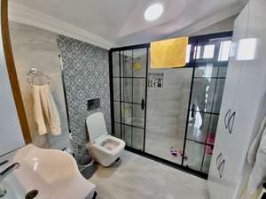 •🧼 Tüm Banyolar ve Kapılar Yeni: Cam çerçeveli duş kabinleri, lake kapılar ve modern armatürler.