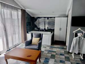 •🛁 Jakuzi Keyfi & VIP Banyo: 24 m² özel banyo, modern küvet sistemi, doğal taş detaylar ve panoramik dağ manzarasıyla tam bir SPA konforu!