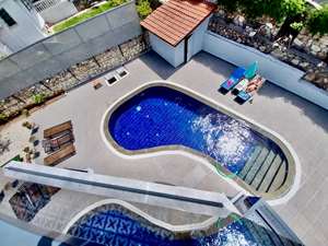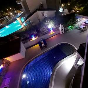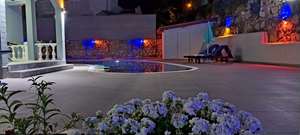 •🏊♂️ Özel Yüzme Havuzu: Mavi seramikle kaplı 4 mevsim kullanıma uygun büyük havuz alanı.